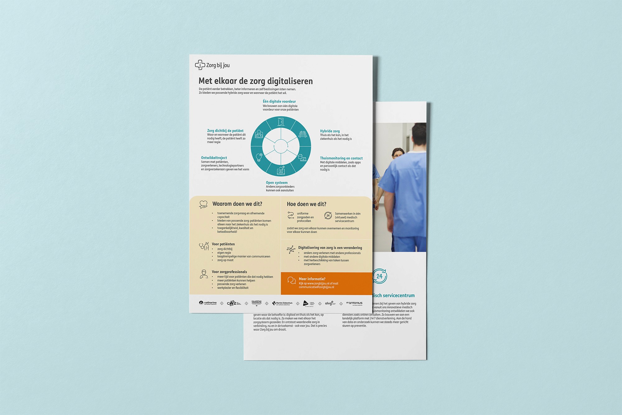 Zorg Bij Jou is an initiative by the seven Santeon hospitals, redefining healthcare through hybrid, value-driven care. By seamlessly integrating digital solutions with in-person treatment, Zorg bij jou ensures patients receive the right care at the right time, whether at home or in the hospital. ACNE crafted a strong visual identity to bring this mission to life. After joining the team, I contributed to the creation of various communication materials, including a video, an animation, and posters.